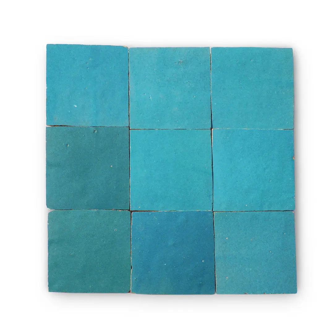 Matte petrol blue zellige tile handcrafted in Morocco. Subtle, artisan finish perfect for wall applications in modern or rustic interiors.