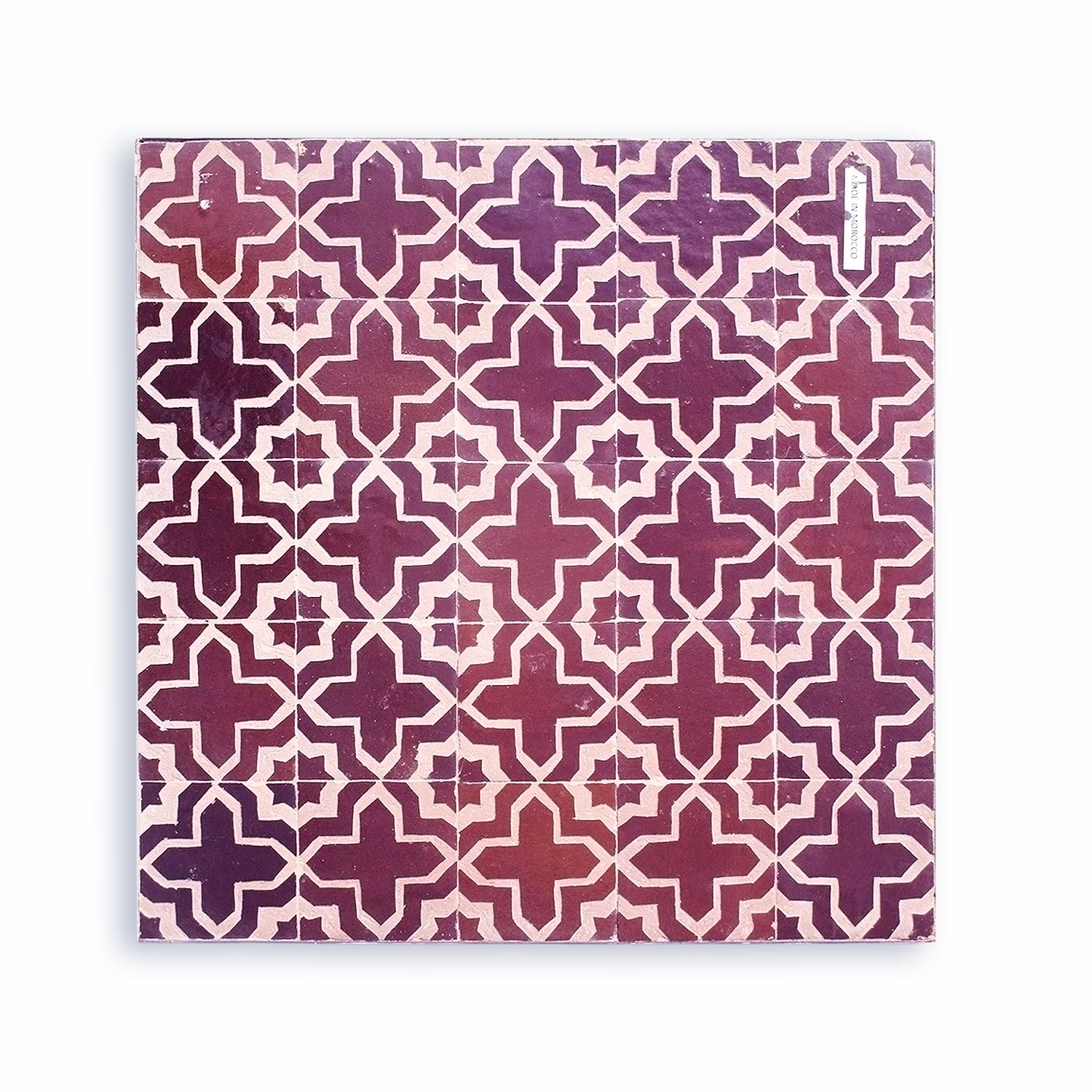 Fez Plum Cross - Hand-Chiseled Zellige Tile