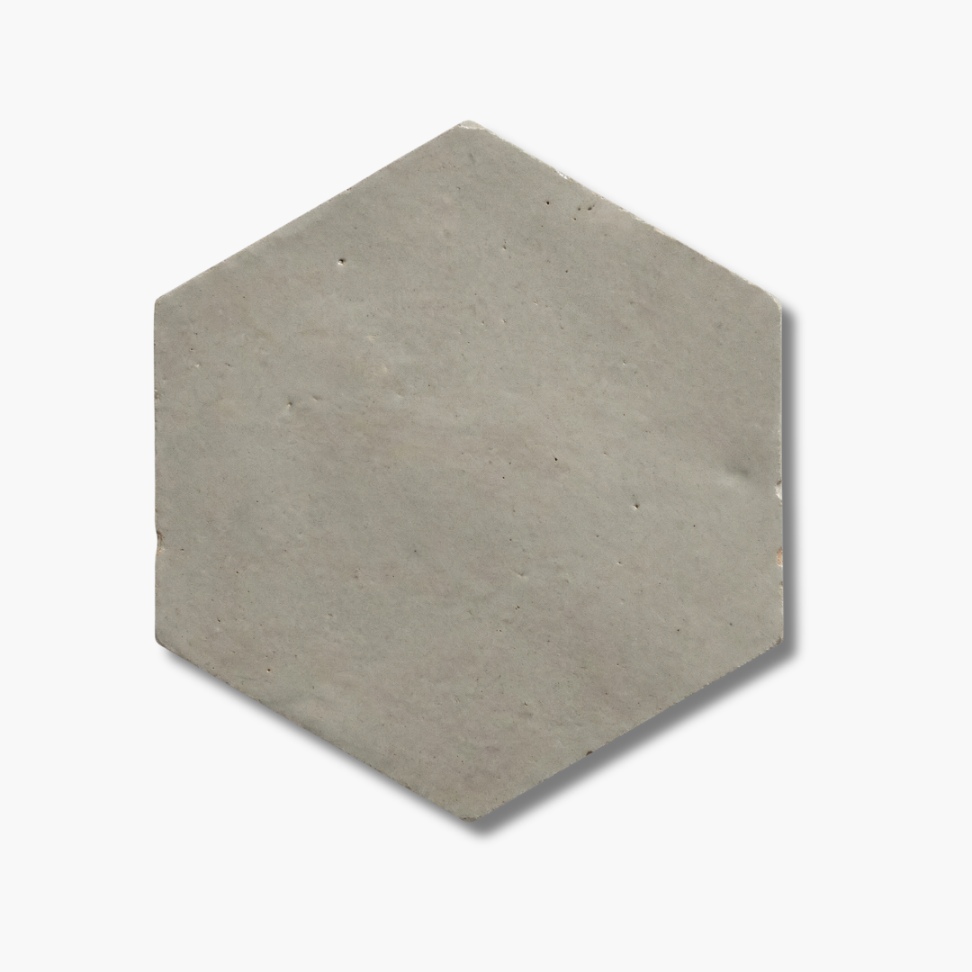 Tan Tan Ecru hexagon tiles provide a light, sandy aesthetic with a premium glazed finish. Authentically handcrafted by Zelligerar for high-end wall projects.